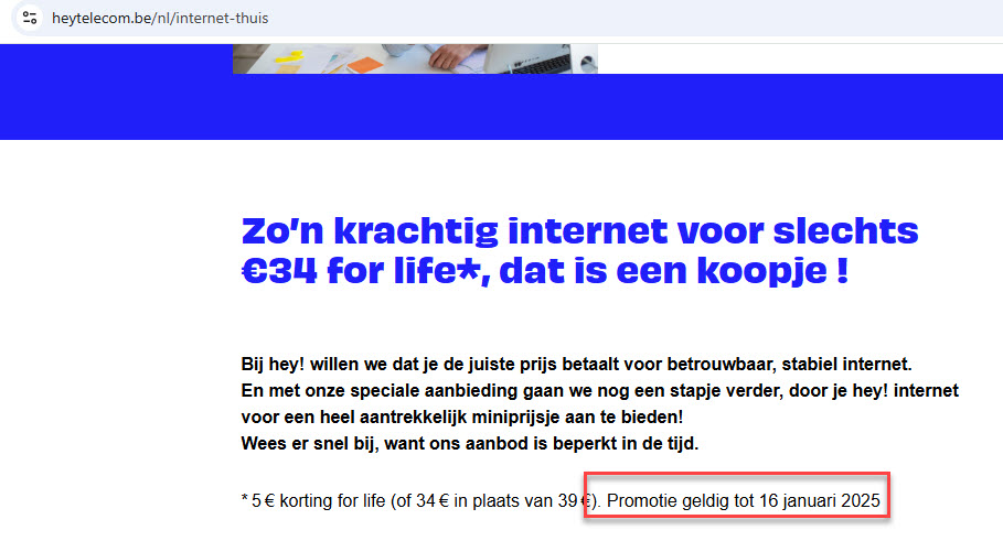 De Hey promotie van 29 Euro geldt nu effectief voor 12 maanden maar is enkel voor Vlaanderen.