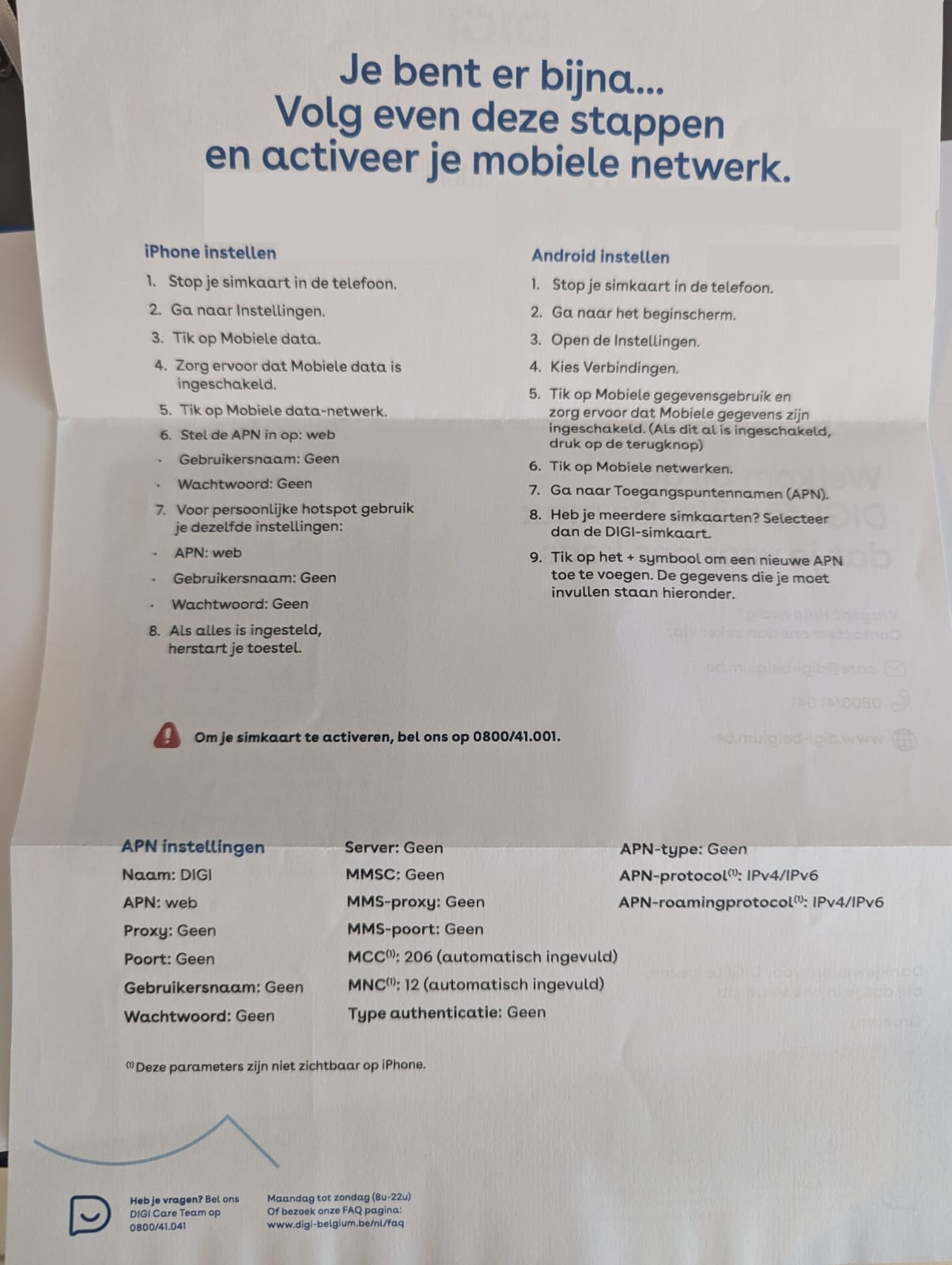 (dus: besteld, verwerkt, simkaart verstuurd, simkaart ontvangen van de postbode, activatieprocedure helemaal doorlopen, en nu actief op DIGI)