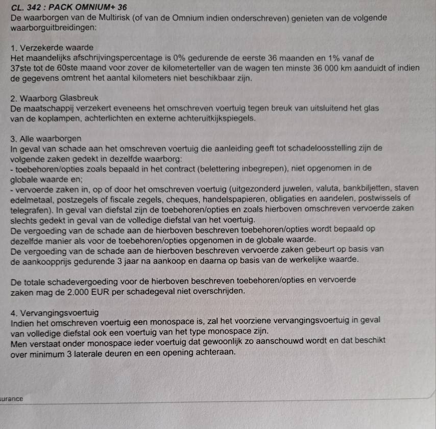 Zit nu bij fortis (ag insurance) en daar heb je ook nog een extra pack wat je kunt nemen en dit heet pack omnium+36 waardoor de waarde van u wagen tot 36 maanden behouden blijf.