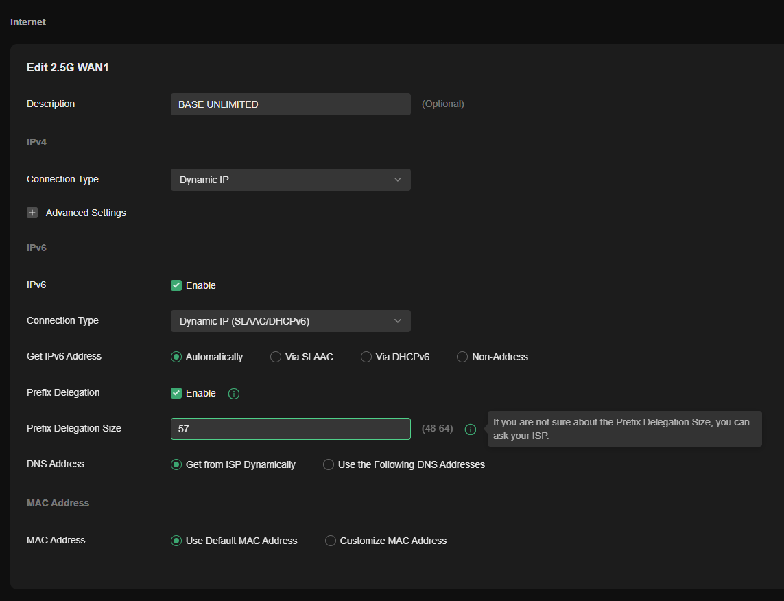 BASE UNLIMITED Internet IPv6 in TP-LINK OMADA netwerk?