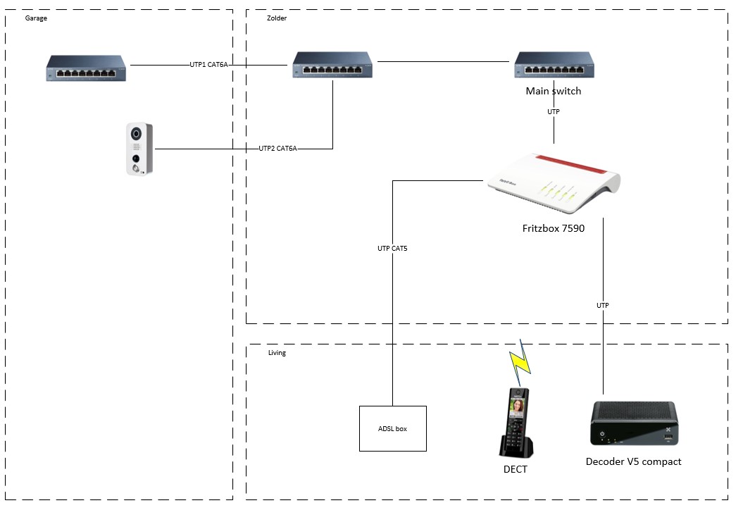 - Encoder type V5 compact (als ik me niet vergis) met UTP verbonden op FritzBox