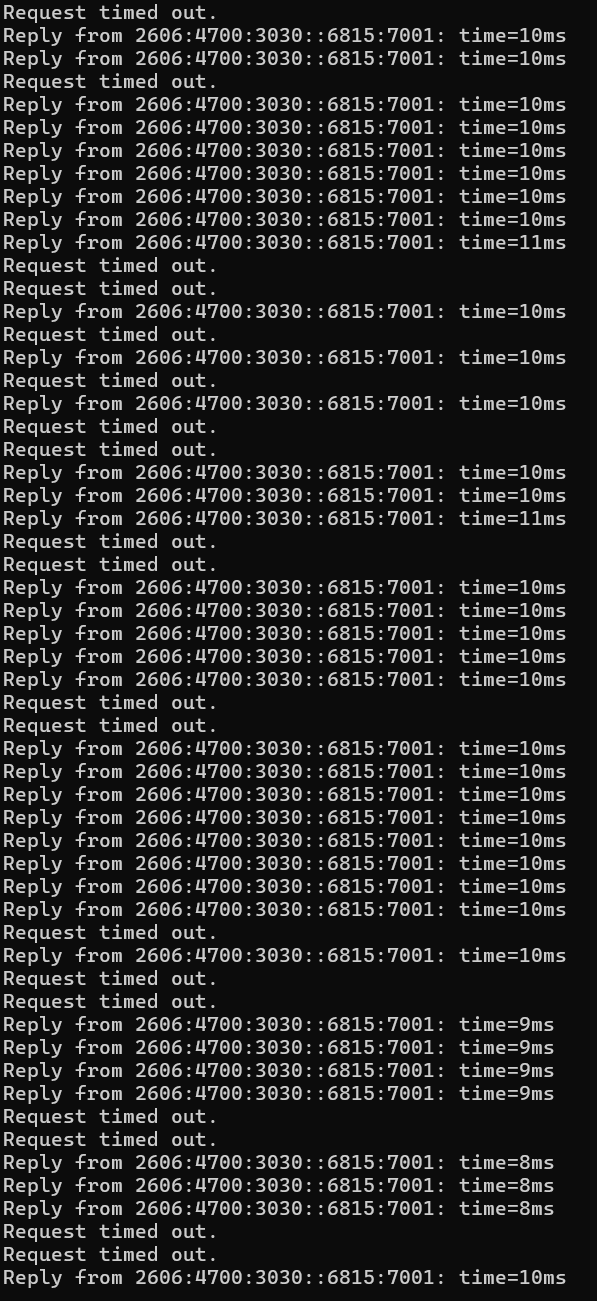 Die timeout is niet direct indicatief naar een probleem, maar er is wel een grote latency dat toch eerder op lijn issues lijkt. Maar ik zie dat je full ipv6 doet ... iets dat je zelf hebt aangepast ? Merk je hetzelfde als je over ipv4 werkt ?