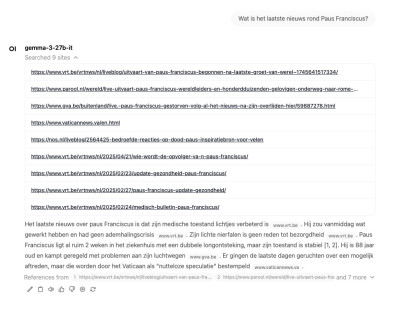 Het is toch ook zo dat men AI wil gebruiken ter vervanging van zoekmachines omdat men dan op een heel natuurlijke manier vragen kan stellen?NuKeM schreef: 26 apr 2025, 13:06 Als ik echt (recente) feitenkennis wil bevragen kan ik dat bv. lokaal al op een LLM op mijn PC die ik web search toegang geef. Dan gaat hij mijn vraag in een search engine laten lopen, de top resultaten inlezen en op basis daarvan een antwoord geven.