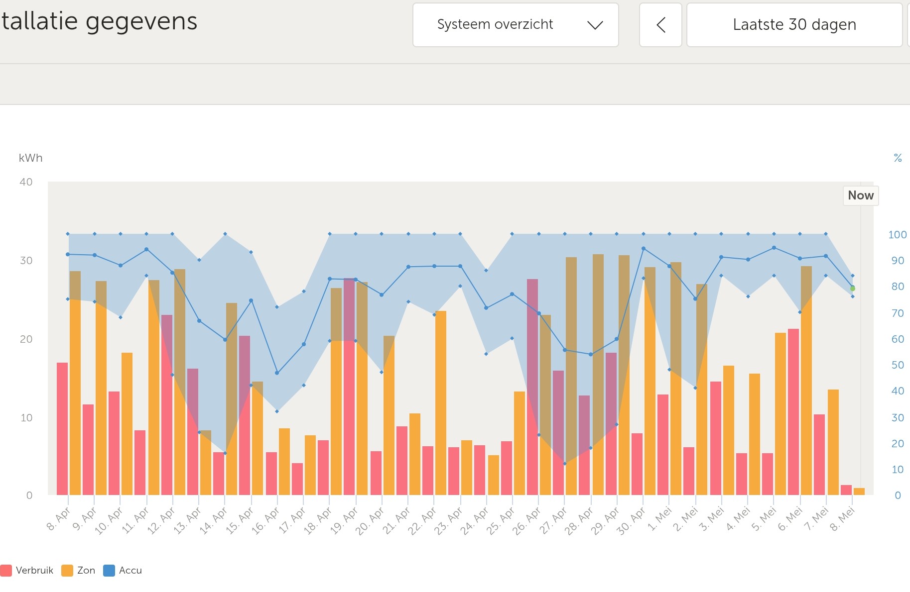 Of bedoel je dat je verbruik voor 100% uit eigen productie komt, m.a.w. in de lente-zomer is je zelfvoorzienigheidsgraad 100%?