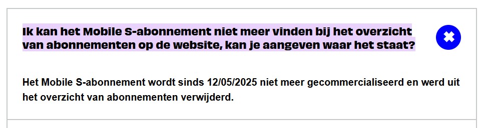 Ondertussen is er een app update gepushed waar dit plan ook verdwenen is.TheCeet schreef: 12 mei 2025, 10:21 Hey blijft wel een specialleke, via hun app kan je precies wel nog die mobile S bestellen..