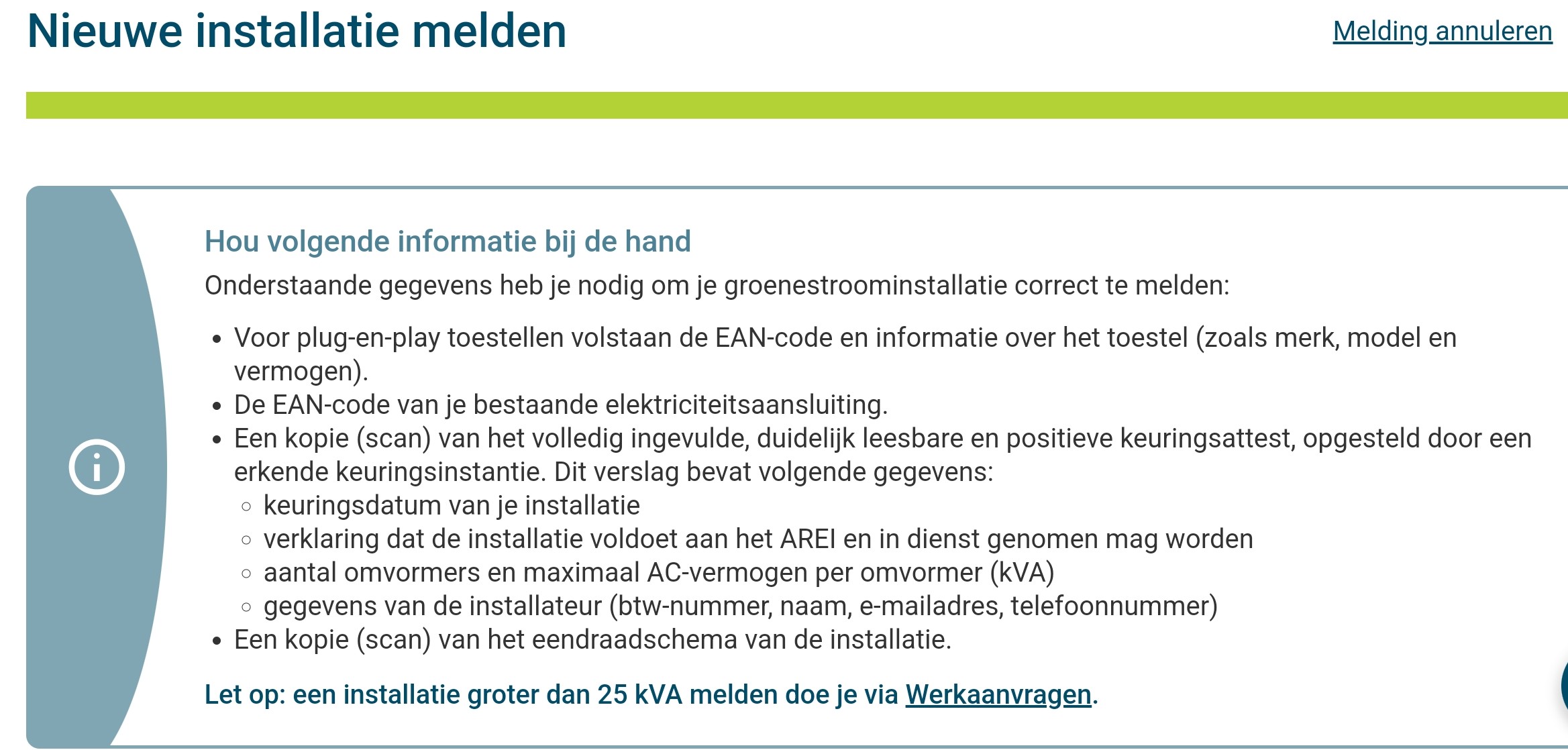 Je vertrouwd erop dat je installateur - na het advies inwinnen bij verschillende installateurs - je PV installatie volgens goed vakmanschap heeft uitgevoerd. Dat is zijn taak. Jouw verantwoordelijkheid is om deze installatie aan te melden volgens de in begrijpbaar Nederlands en met hand en tand uitgelegde procedure.