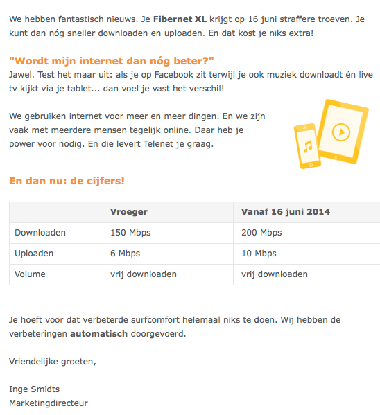 Ik heb die mail zoals MarcVanc postte niet gehad. Op Mijn Telenet vind ik de snelheden niet zo snel (meer) terug.
