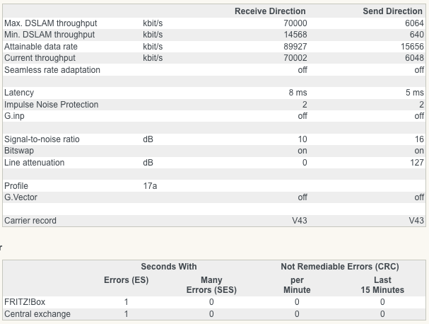 Indien een van jullie een FritzBox 7360 gebruikt op een Belgacom vectored lijn, wil je dan eens de lijnwaarden posten?