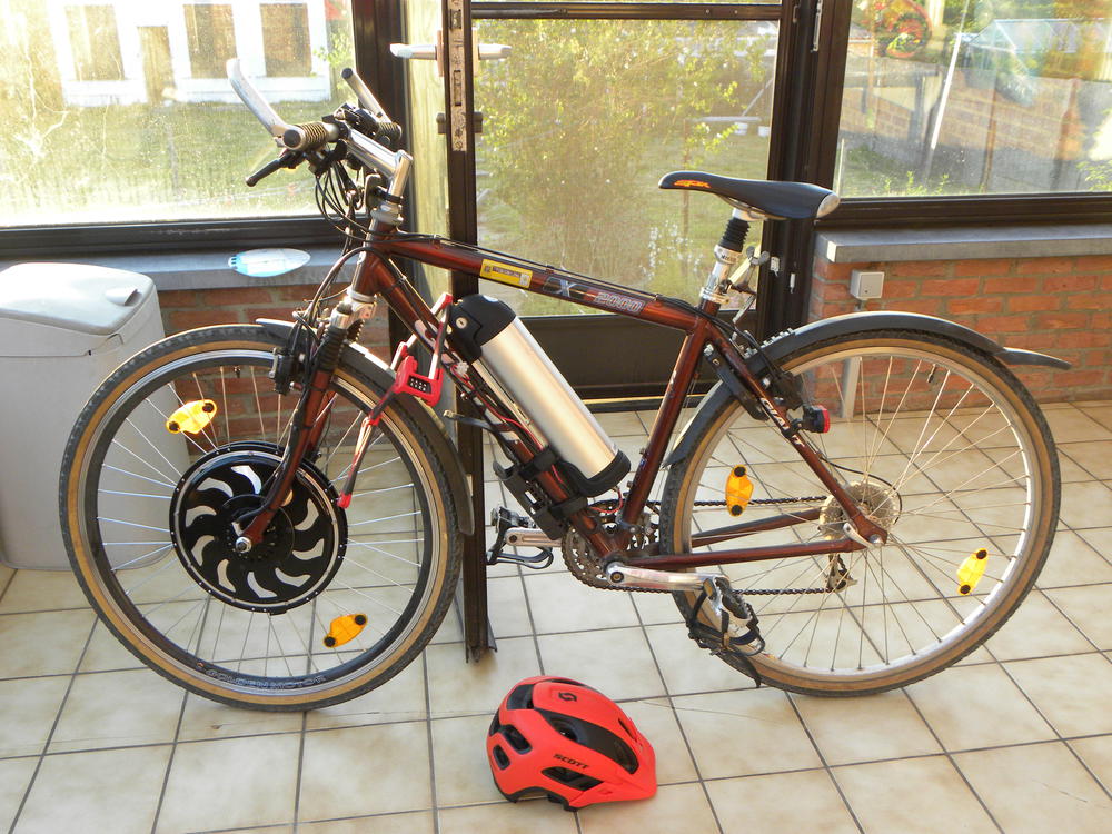 Dit verhaal komt zo bekend voor ... had ooit eens een mountain bike gevonden, die al in twee stukken met een slot aan mekaar hing. Enkele kritische verbindingenpunten waren verdwenen, maar die kon je makkelijk in de fietshandel vinden. Omdat mijn ma dacht dat die fiets daar al stond, gestolen, en klaar om te moven, heeft ze die fiets meegenomen naar ons buitenverblijf, bij den boer met de slijpschijf slot in twee en nieuwe spil in voorwil ... et voila.