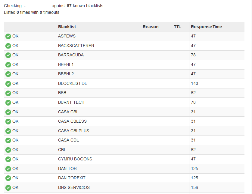 Geen idee waaraan we dat verdiend hebben, volgens een check bij de meeste blacklists staan we er nergens op.