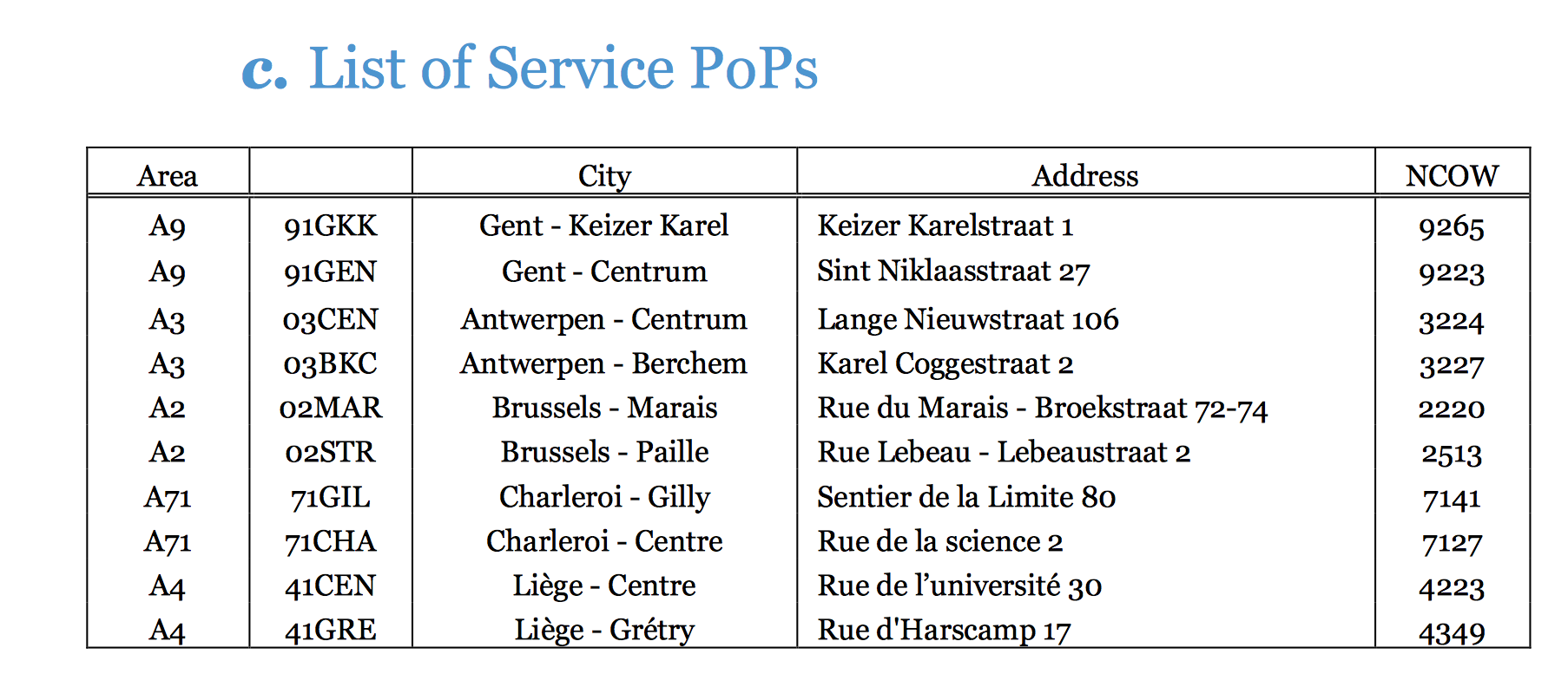Ondertussen even gezocht en het volledige lijst opnieuw tegengekomen (komt uit publieke doc's).krisken schreef:Gent Kleindokkaai? 91GKK staat voor Gent Keizer Karel(straat) hoor