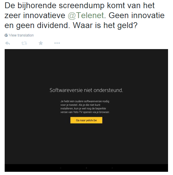 Ook Proximus loopt op dat vlak achter de feiten aan, maar die kwamen wel met een nieuwe versie uit na een aantal weken. Maar 3,5 maanden vind ik er nu toch ook over.