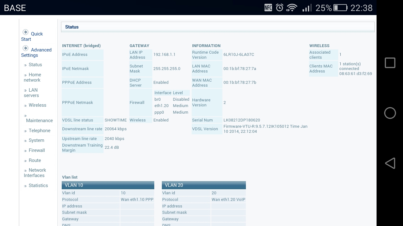 ************************************** * VDSL2Tool 2.3 - http://hierzo.net/ * ************************************** download upload Line: 30040 kbps 10048 kbps Modem max: 47228 kbps n/a Estimated! Calculated max: 38776 kbps 8124 kbps Estimated! Profile: 17a Line length: 227 m Estimated! Training margin: 12.9 dB Attenuation: 11.7 dB