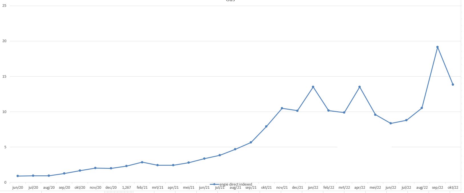 Ik blijf het herhalen, maar die V-Test is even onzinnig als alle andere vergelijkers. Ik vraag me overigens echt af hoe ze aan hun bedragen komen, en dan bedoel ik hoe het echt berekend wordt. Simpel voorbeeld van mijn contract : Engie 1Y Direct. Volgens de laatste product fiche (sept 2022) kost de energiecomponent 19.16c/kWh, en dat is dus eigenlijk de tarief voor je verbruik in augustus, op basis van de ZIGDAM index van augustus. Doe ik de V-Test, dan rekenen zij blijkbaar op 32.88c/kWh ! Nochtans, als je de TTF grafiek van de voorbije 3 maand erbij neemt, denk ik niet dat september tot nu toe gemiddeld gezien 70% hoger ligt dan in augustus. De grote piek was overigens eind augustus, dus die zit al mee verrekend in de ZIGDAM index van augustus en dus in die 19.16c.