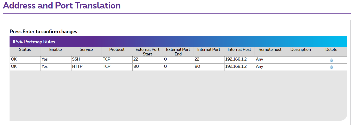 (poort 80, PPPoE die er niet blijkt te zijn, poort 22 publiek op het internet)
