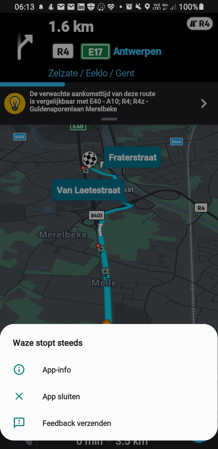 Zijn er nog die de laatste tijd last hebben tijdens het gebruik van waze onderweg dat waze zichzelf afsluit of crasht en dan terug opstart.