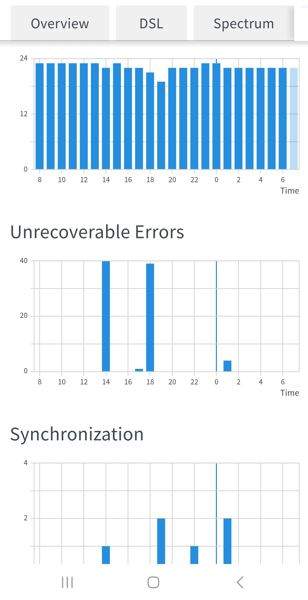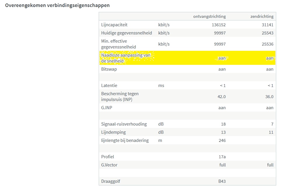 - 2 dagen geleden had ik uitstekende waarden en terug 100/30 na het plaatsen van de scotch locks, de nacht daarop werd ik op 70/6 geplaatst vermoedelijk omdat de lijn de vorige 4 dagen lang errors gaf maar nog steeds uitstekende waarden (bevestigd door EDP support en moest wachten op DLM)