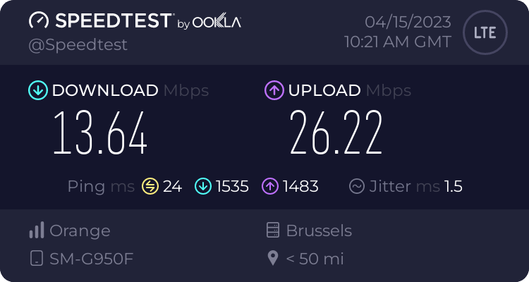 Hier helemaal geen klagen over de snelheid, werkt zowel in binnen- als buitenland perfect. Zeer tevreden.