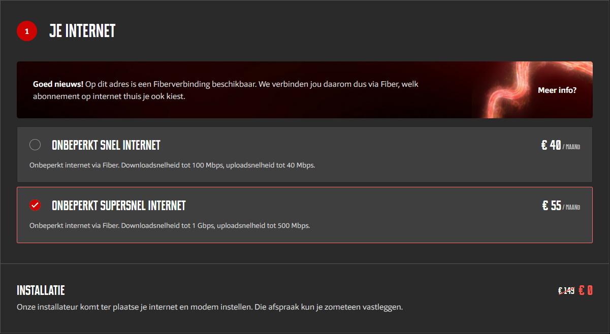 Je vergeet wel te vermelden dat fiber van MB maar een flauwe soep is met Downloadsnelheid tot 100 Mbps en Uploadsnelheid tot 40 Mbps.