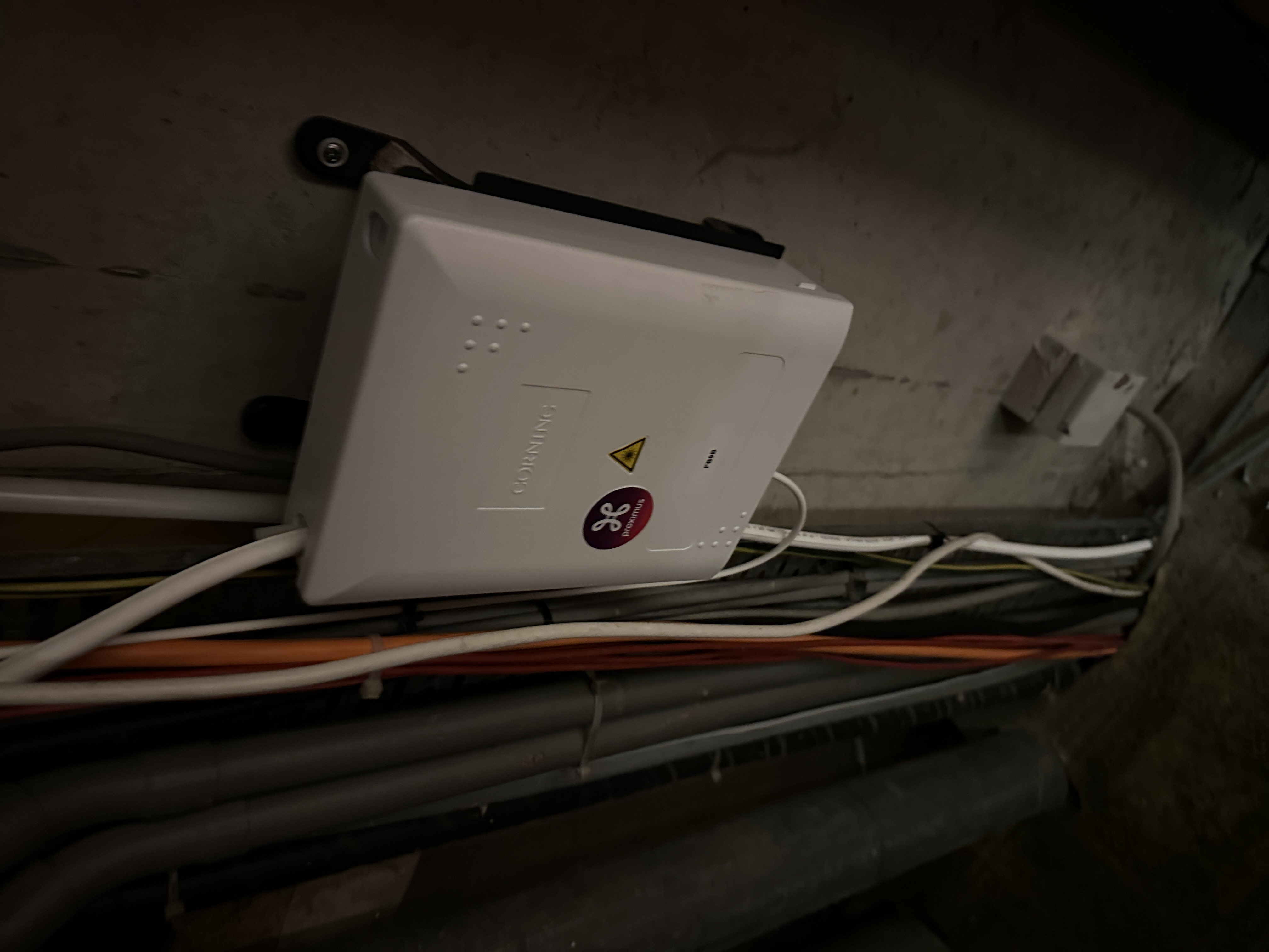 Op de foto zie je dat er al één individuele aansluiting is aangelegd. Misschien bij een buurman op dezelfde verdieping of bij jou. Geen idee.
