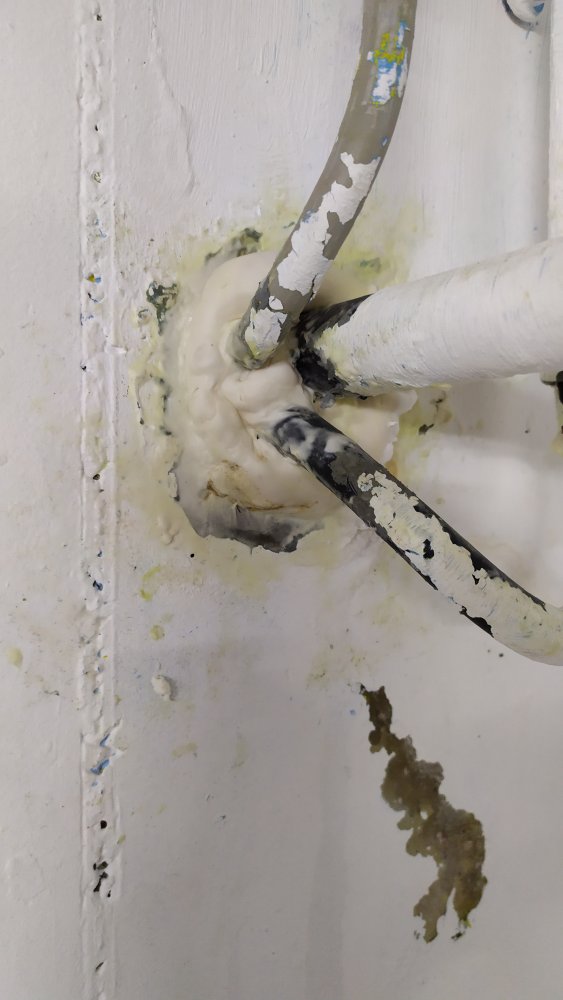 Ook achteraan in de kelder is er een gat waar leidingen doorlopen en daar heb ik ook 5cm Soudal Aquaswell ingespoten maar het water blijft er doorkomen.