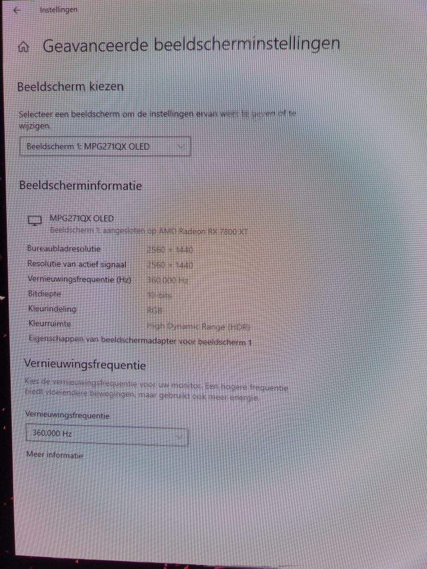 Deze zou een frequentie van 360Hz moeten aankunnen, maar ik geraak maar in Windows 10 tot 120Hz.