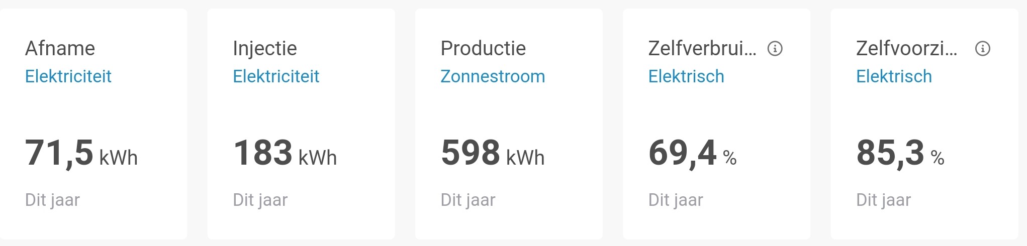 Ik heb 17kWh moeten inkopen de laatste 30 dagen, op dezelfde periode wel een paar honderd kWh export :)