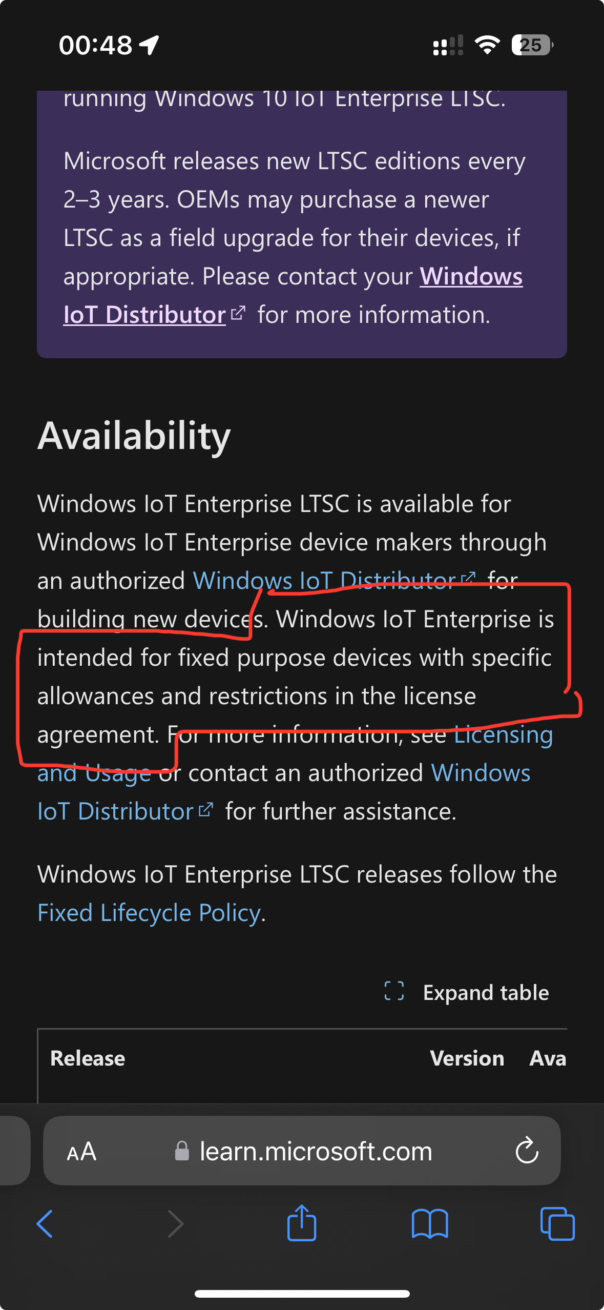 Waarom de Iot versie en niet de gewone W10 LTSC versie? De Iot versie is idd een gestripte versie met beperkte functionaliteit.