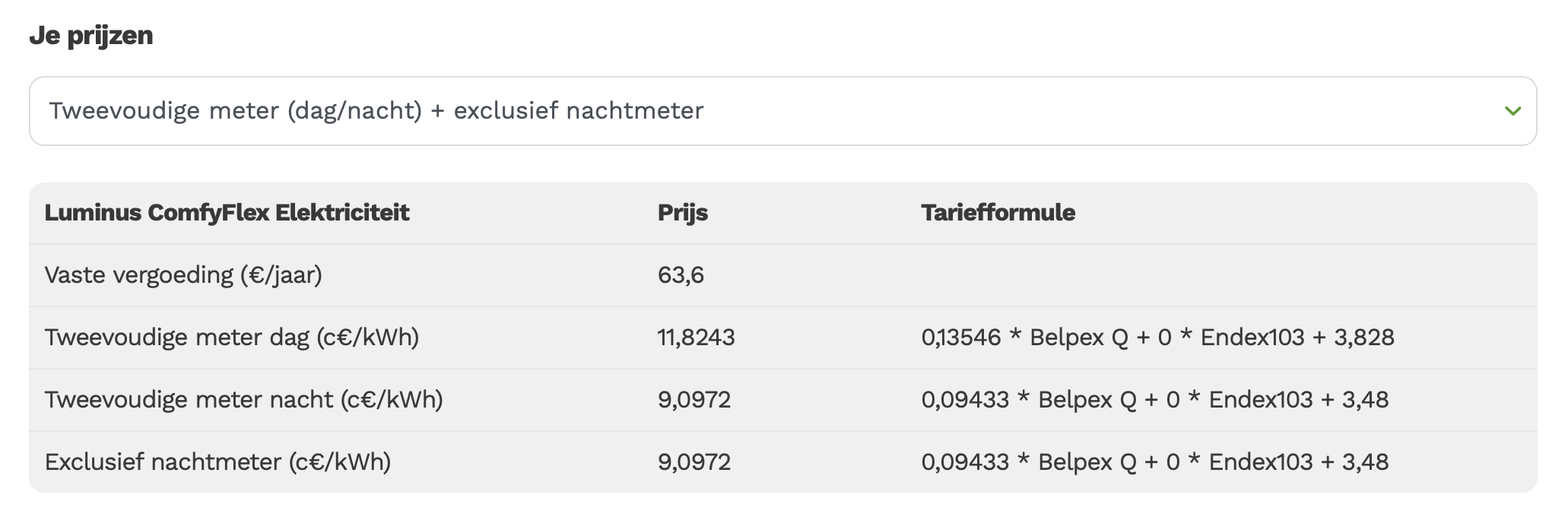 leverancier is Luminus, en prijzen in mijn contract zijn:
