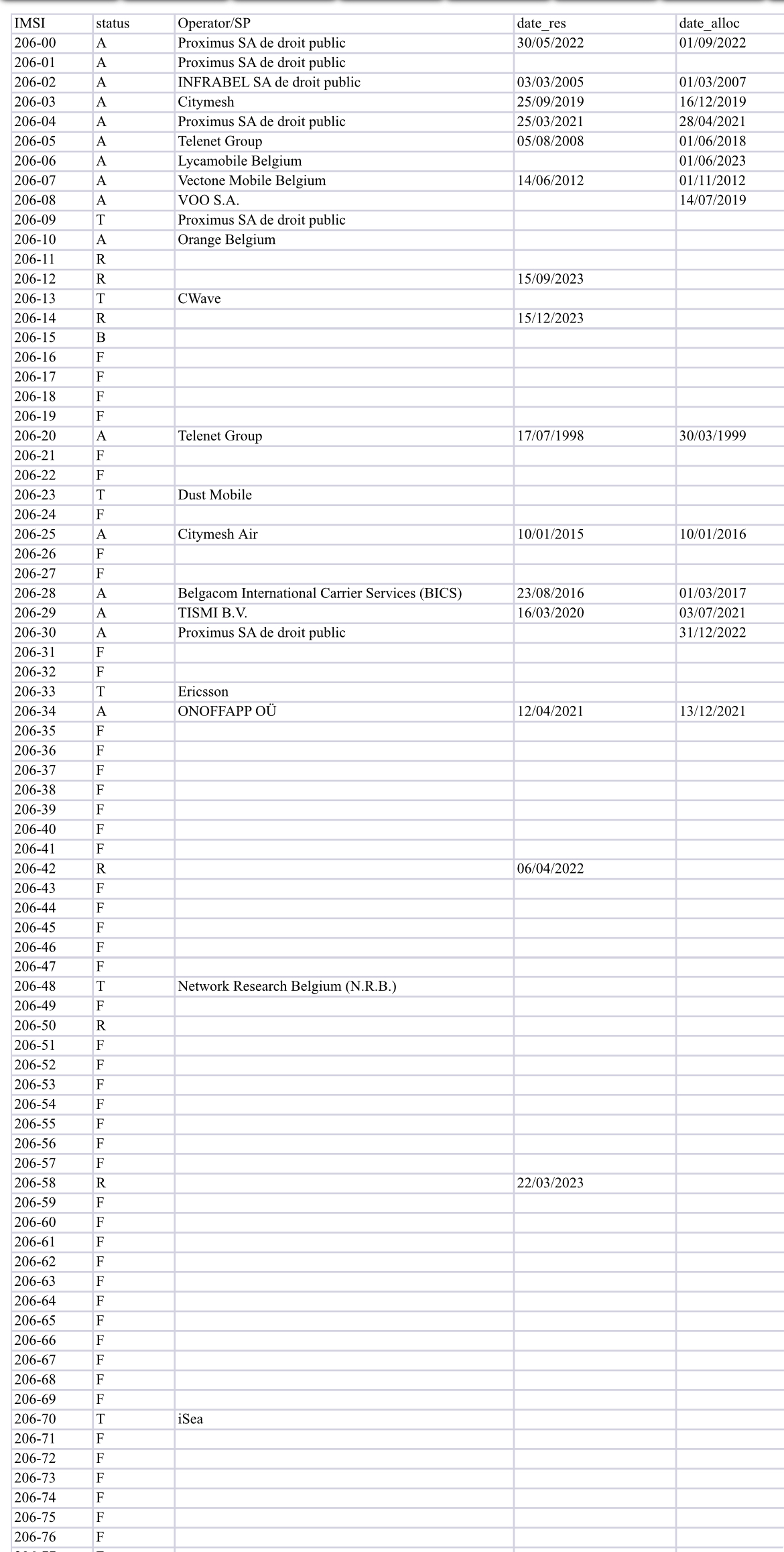 Daar staat de lijst met de Belgische MNC codes in dat bestand.