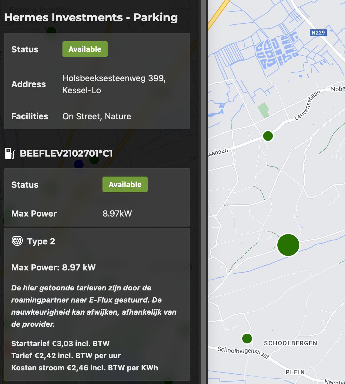 Wat de prijzen betreft : het is mijn bedrijfslaadkaart, maar een korte google opdracht leerde mij : startkost +0,10 euro voor niet EDI-laadpalen en +0,04 euro servicekost per kWh.