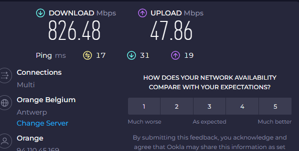 keerekeerweere schreef: 10 okt 2023, 21:17 Correctie om 22u41: speedtest naar Orange BE : 604/46