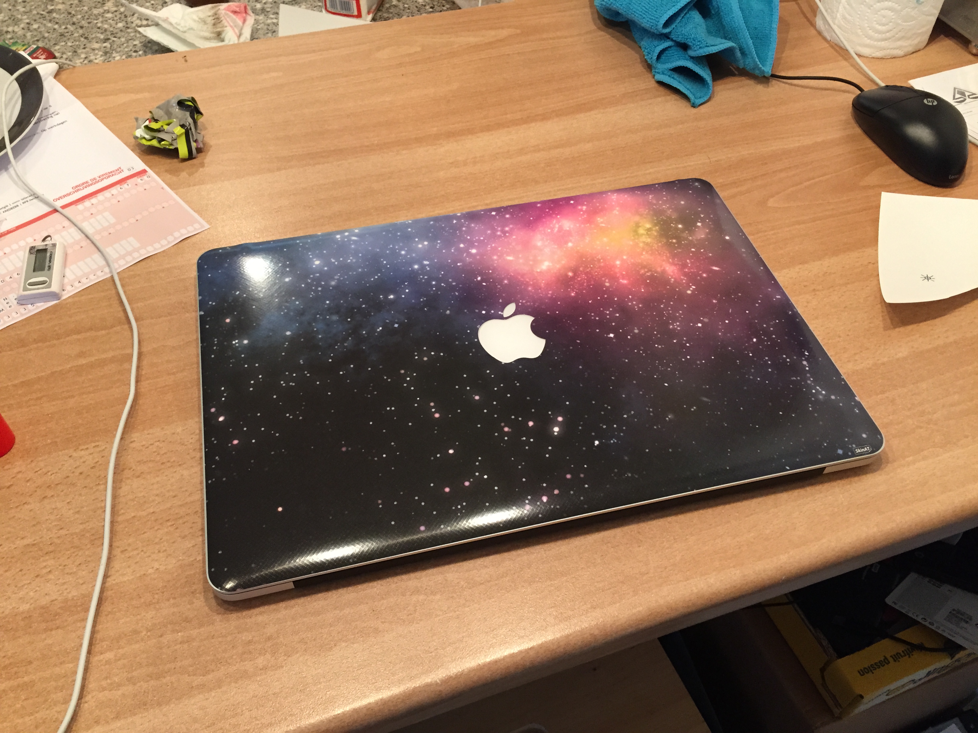 De clue was natuurlijk dat wonderdoekje om het stof af te doen, dus stof op zijn laptop was redelijk onwaarschijnlijk :).