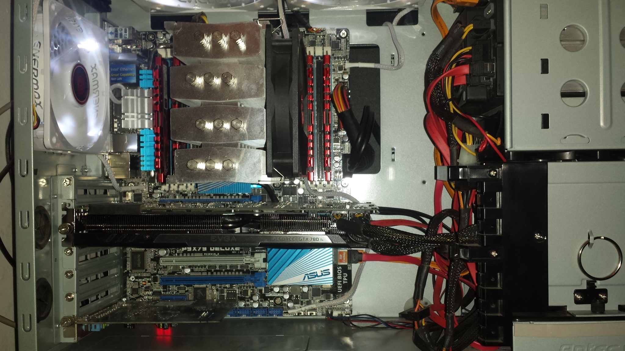 Haha, hij is zo groot (en zwaar, pak hem niet graag op) dat hij niet in mijn computercast onderaan den bureau past :( Nu staat hij op den bureau naast mij. Bureau is al een geluk meer dan groot genoeg. Ik vind het idee van antec wel goed om 2 compartimenten te maken. Voeding wordt nooit warm doordat hij zijn eigen aanvoer heeft, onderaan in de kast zit en geen andere warmte door zijn componenten moet jagen (vanboven wordt alle warmte van de case er door gejaagd). Omgekeerd is de afscheiding ook goed om de warmte die de voeding eventueel produceert niet naar boven wordt geblazen. Doordat alles zijn ruimte heeft is de airflow natuurlijk optimaal.