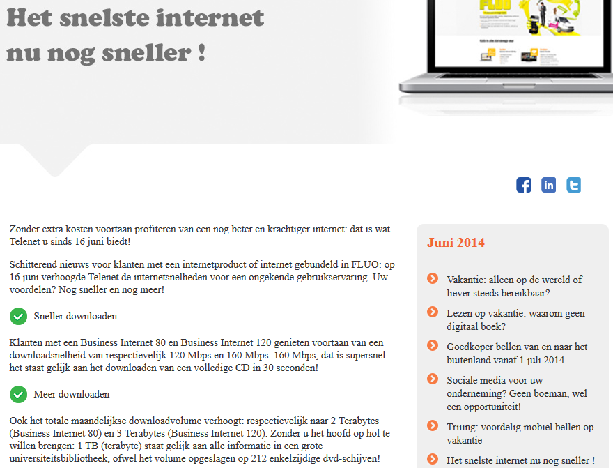 Zonder extra kosten voortaan profiteren van een nog beter en krachtiger internet: dat is wat Telenet u sinds 16 juni biedt!