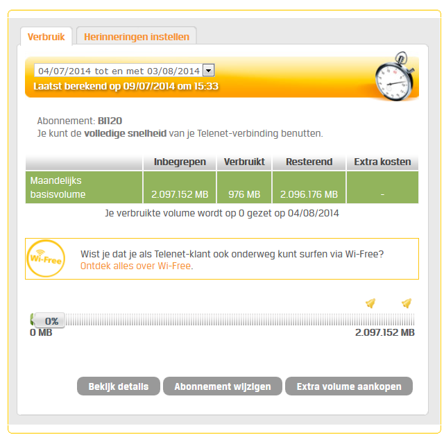 Voila abbo is nu BI120 ipv BI160, hopelijk is de factuur volgende maand ook juist.