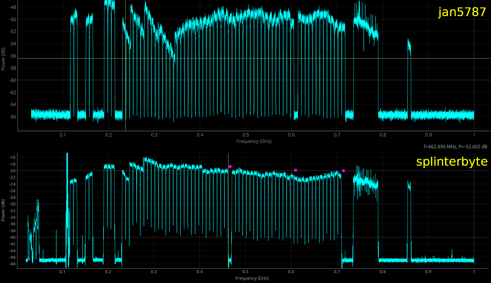Heb een scan gedaan en de verschillen boven elkaar gezet. Een paar kanalen aan en anderen dan weer uit.