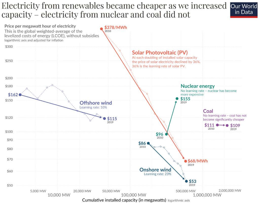 De prijzen zijn ook gezakt omdat er elk jaar veel HE bijkomt en deze steeds goedkoper wordt zoals al in diverse cijfers/beelden aangetoond, oa door de wereldautoriteit IEA. Dat ondergraaft het businessmodel van kernenergie compleet. Het is niet flexibel en past niet in een toenemend scenario van overvloedige HE. Met af en toe wat bijspringen komt men er niet want men komt er nu al bijna niet. Opnieuw, er is een hele goede reden waarom geen enkel, totaal geen enkele, privéonderneming nog aan de zaak wil beginnen. Het is verlieslatend zonder enorme subsidies en garanties op hoge prijzen. En ja, het riedeltje van de wet op de kernuitstap mag ook opgeborgen worden want in landen zonder die wet zijn er even eugh... veel privé investeerders.