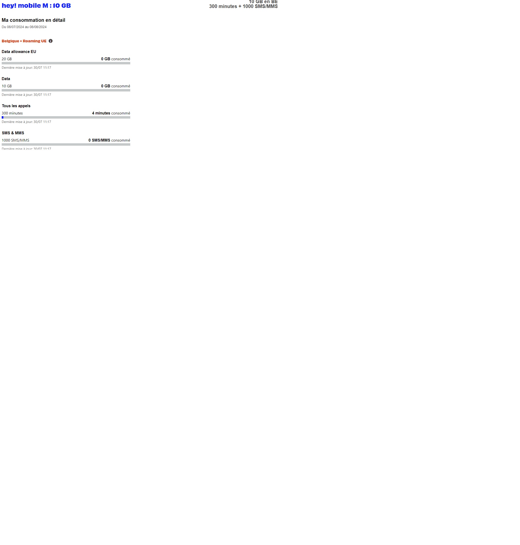 Inmiddels heeft VossyGamer ook zijn antwoord op het Hey forum. Volgens Rizlaine gebruik je eerst de gezamenlijke pot van 10 GB voor data in België en roaming. Daarna begin je de tweede 10 GB te verbruiken (maar die uitsluitend in België). De app moet nog worden geüpdate om dat allemaal goed weer te geven.