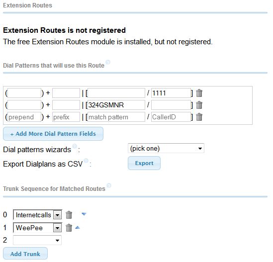 Ik heb het voorlopig even anders opgelost, ik heb een nieuwe ringgroup aangemaakt en daar het GSMnummer ingegeven bij Extension List met een # er achter. Werkt prima zoals ik het wil, maar ik had een andere oplossing verwacht dat bvb extensie 2000 kon koppelen aan 0470 00 2000. Die extra ringgroups maken het nogal onoverzichtelijk.