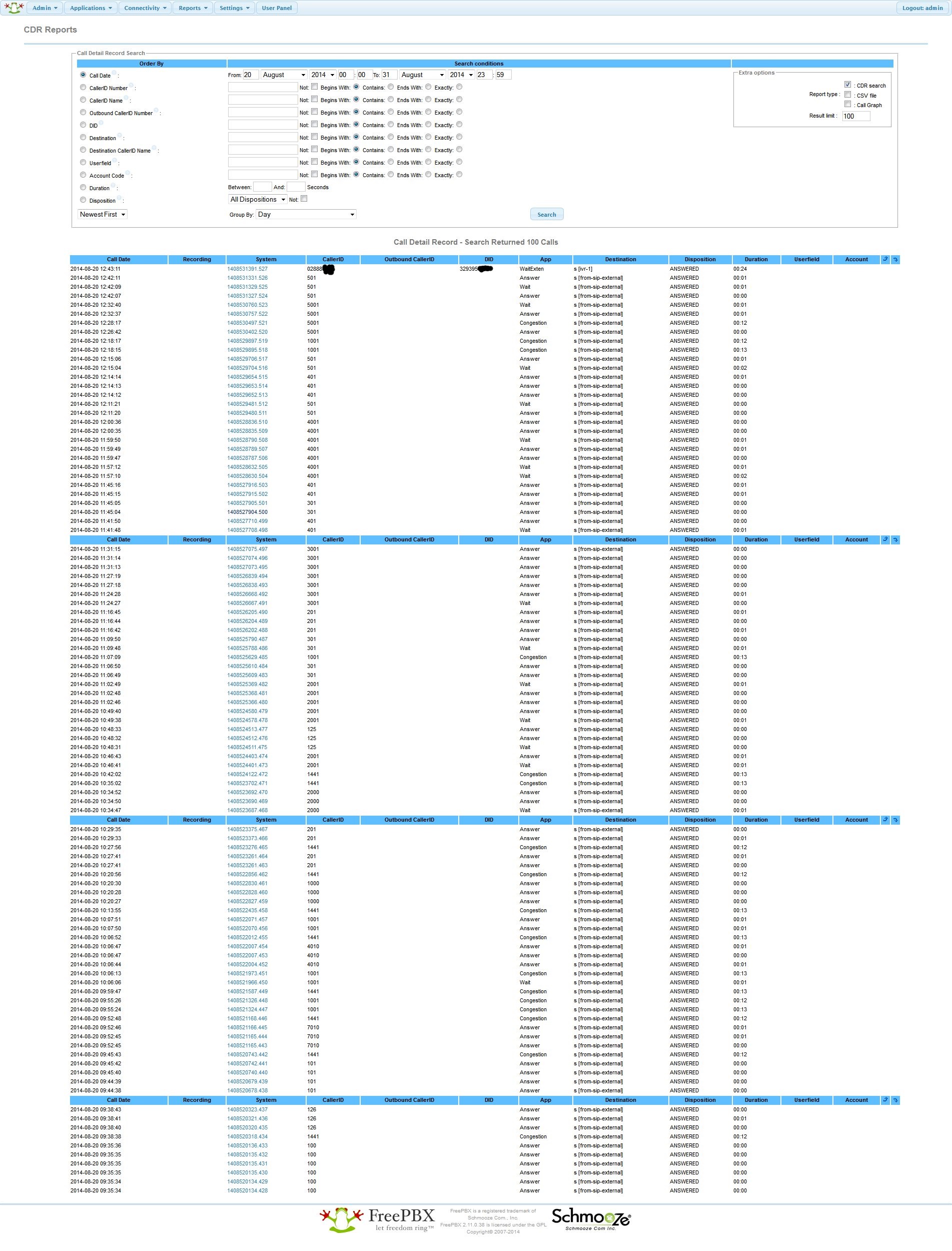 FreePBX : CDR Reports
