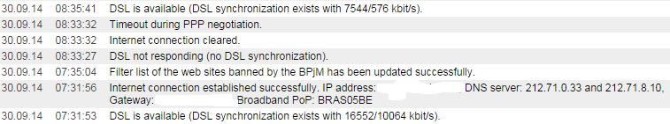 of een stub doordat TS zijn modem in een ander stopcontact gestoken heeft, of een draadje bij heeft gestoken, of .... :)