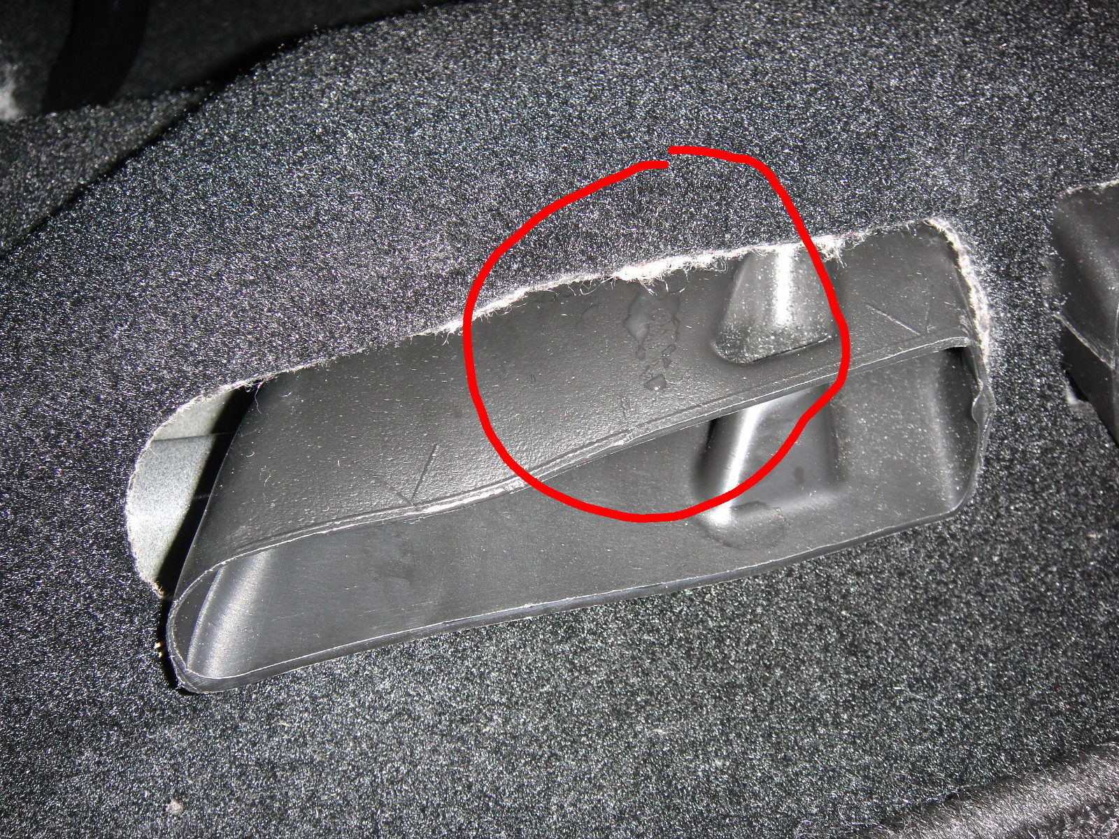 De auto terug naar de dealer dus (nog dik meer dan 2,5 jaar garantie). Een paar dagen later de auto terug met gedroogde matten en de opmerking dat "de deuren en vensters toe moeten als het regent" (over dit ga ik uiteraard geen verdere commentaar geven). De ruiten zijn echter nog steeds natter van binnen dan van buiten dus ik ga op onderzoek, vooral langs de kabels die onder de zetel richting bodemplaat verdwijnen. Het blijkt dus dat heel het gedoe nog altijd een natte spons (voor EN achter) is van een goei 10cm dik.