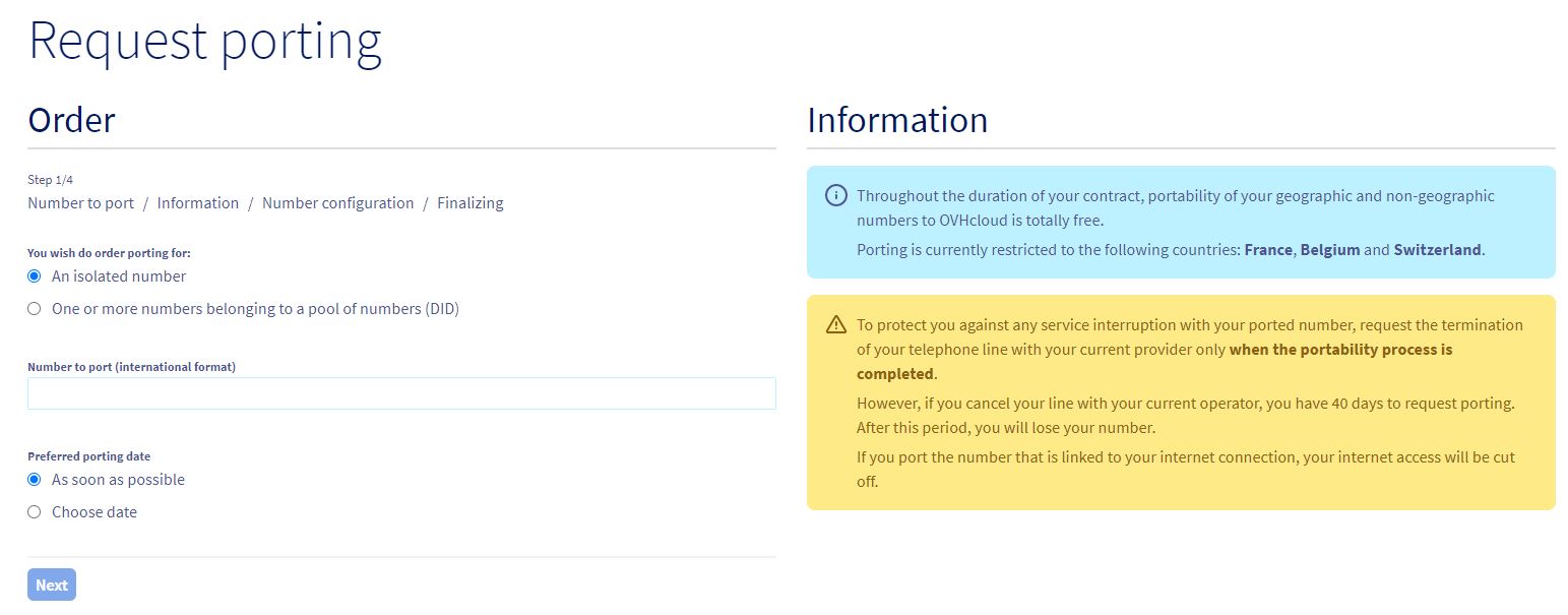 - je krijgt er gratis één Belgisch OVH nummer, maar je kan ook een bestaand Belgsich nummer porteren.