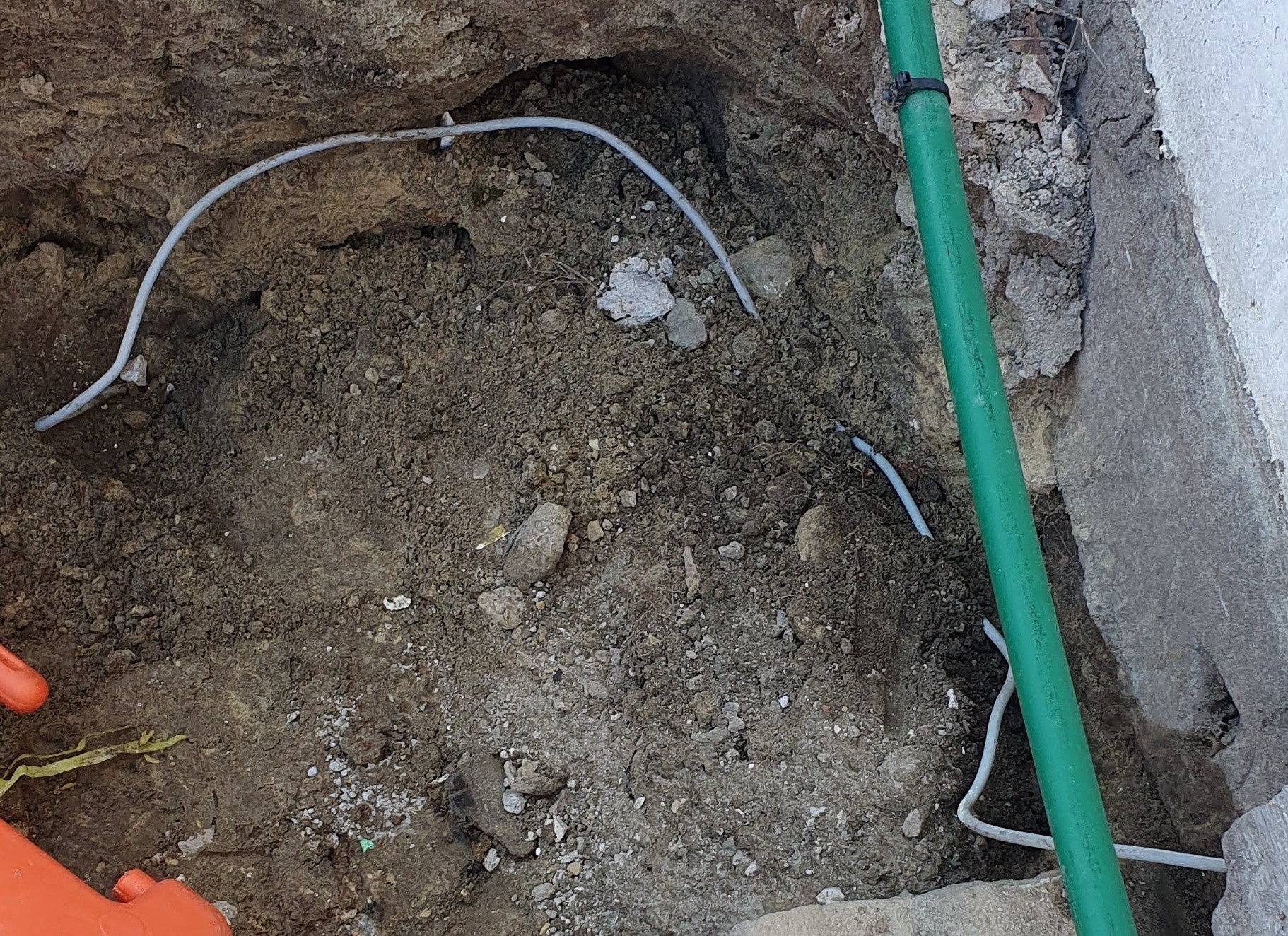 Nu ligt het voetpad open voor afsluiten van de elektriciteit en zie ik die kabel ook verdwijnen onder het voetpad.