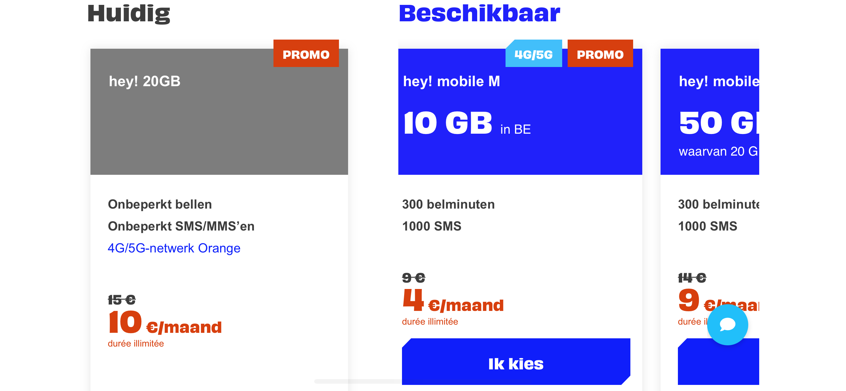 Op de site van Hey staan nieuwe tarieven voor mobiel: