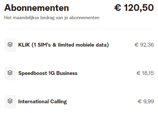 Zodra het inbegrepen maandelijks datavolume van een simkaart (max. 100 GB per gsm-nummer) is bereikt, kan je zonder extra kosten verder blijven surfen aan een verlaagde snelheid van 512 Kbps tot de volgende aanrekeningsperiode.