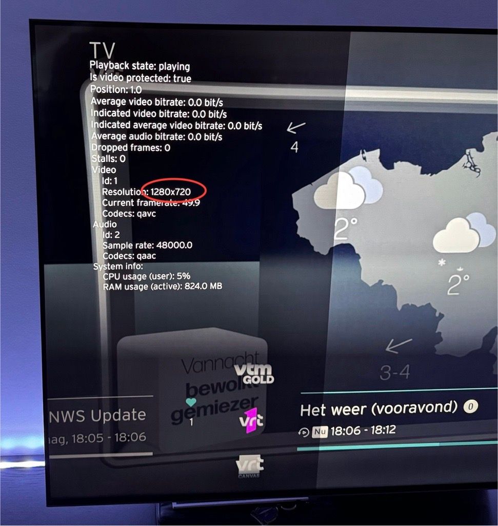 Allright, even getest hier op AndroidTV en idd live VRT 1 is 720p, terwijl VTM 1080p is...